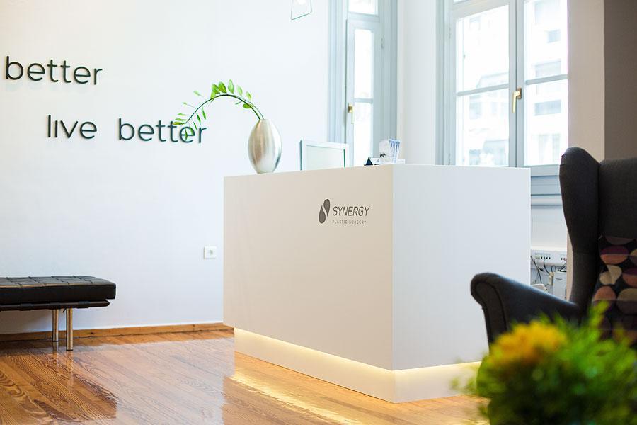 Από την ενημέρωση για τις υπηρεσίες μας και το κλείσιμο του ραντεβού σας στην γραμματεία, την ελάχιστη αναμονή, μέχρι το καλύτερο δυνατό αποτέλεσμα εφαρμογών Πλαστικής Χειρουργικής και Αισθητικής Ιατρικής, οι πλαστικοί χειρουργοί αλλά και το υπόλοιπο προσωπικό της synergy έχουν σαν στόχο την παροχή υψηλού επιπέδου υπηρεσιών.